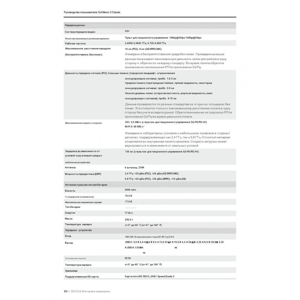 - Время полёта до 46 минут на штатном интеллектуальном аккумуляторе — этого хватает на длительные вылеты с запасом, серийную разведку по маршруту и возврат с безопасным остатком заряда.