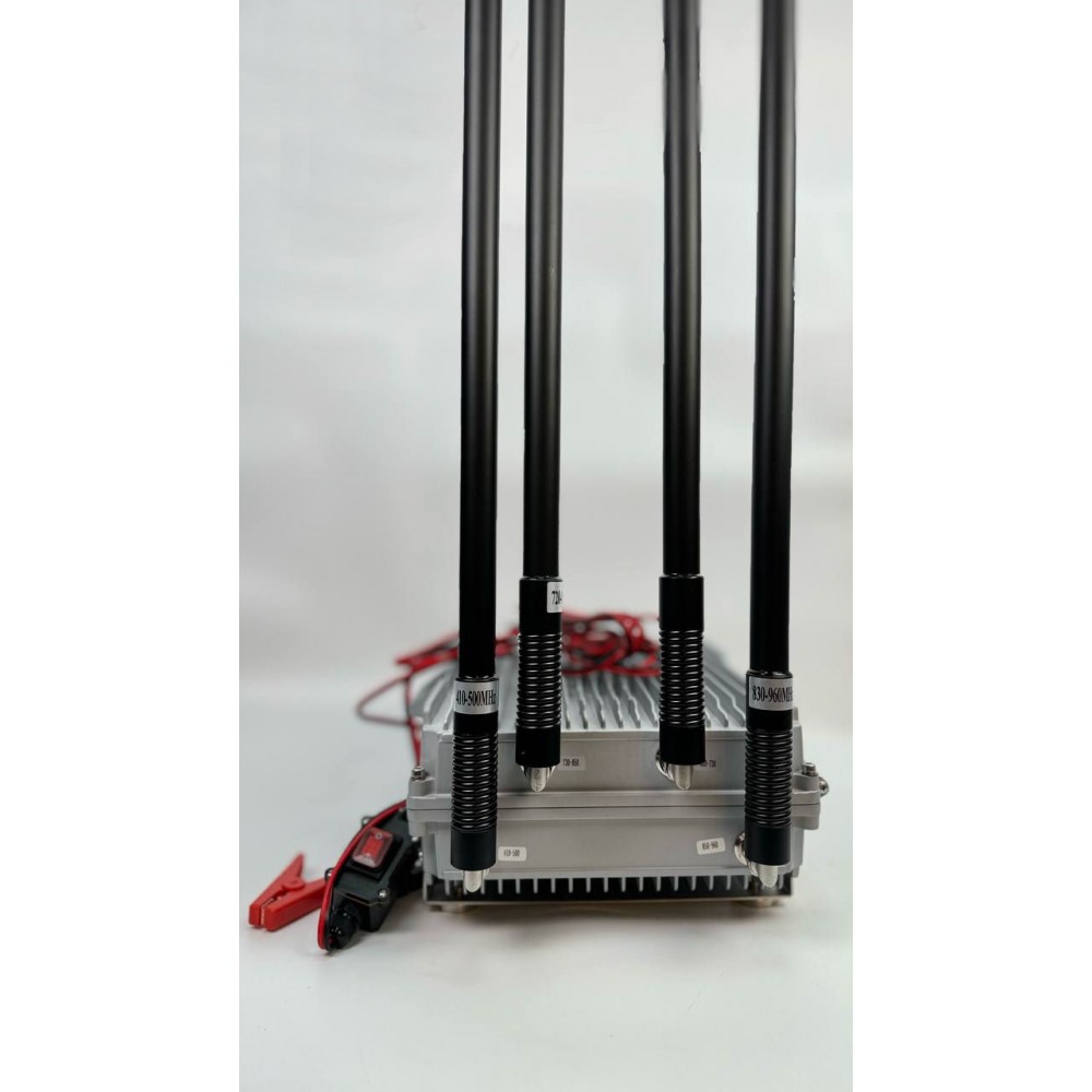 Корпус устройства изготовлен из прочного алюминия, что обеспечивает устойчивость к ударам и различным погодным условиям. Это гарантирует долговечность и стабильную работу в любых условиях эксплуатации. Дополнительно устройство оборудовано выносными антеннами и двумя охлаждающими вентиляторами, что предотвращает перегрев и обеспечивает надежную работу при длительном использовании.
